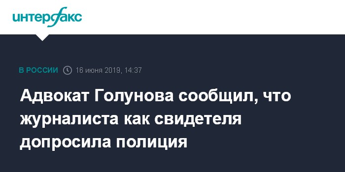Адвокат Голунова сообщил, что журналиста как свидетеля допросила полиция