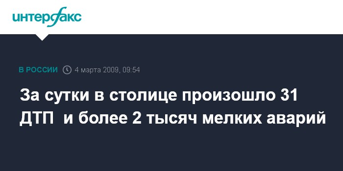 Москва. 4 марта. INTERFAX.RU - За прошедшие сутки в Москве зарегистрировано 31 дорожно-транспортное происшествие, в котором 1 человек погиб и 36, в том числе 2 детей, получили травмы, сообщили "Интерфаксу" в управлении ГИБДД столицы в среду.