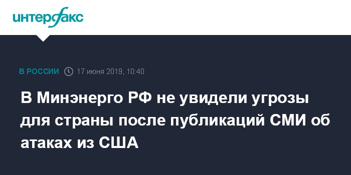 "Информации об атаках на объекты энергетики в Минэнерго от компаний не поступало", - заявили в ведомстве в ответ на просьбу прокомментировать публикацию в New York Times.