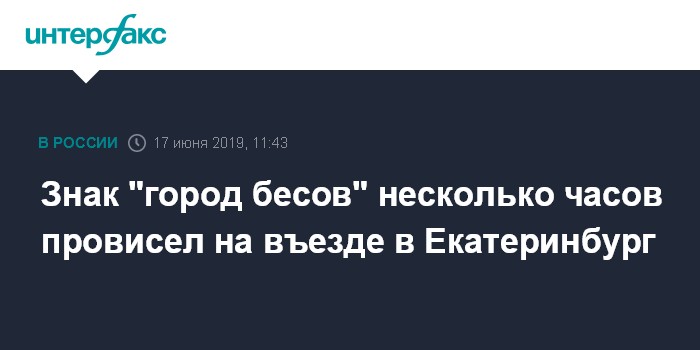 Москва. 17 июня. INTERFAX.RU - Знак "Город бесов" появился возле указателя с названием города на въезде в Екатеринбург.