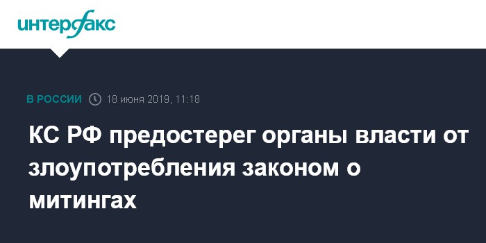 Москва. 18 июня. INTERFAX.RU - Конституционный суд РФ предостерег публичные органы власти от злоупотребления законом "О собраниях, митингах, демонстрациях, шествиях и пикетированиях".