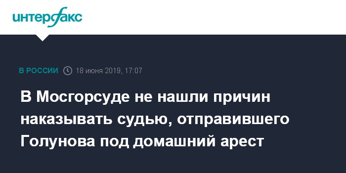Москва. 18 июня. INTERFAX.RU - Председатель Мосгорсуда Ольга Егорова не видит оснований для привлечения к ответственности судьи, принявшего решение о домашнем аресте журналиста Ивана Голунова.