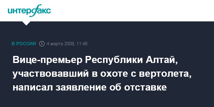 Вице-премьер Республики Алтай, участвовавший в охоте с вертолета, написал заявление об отставке