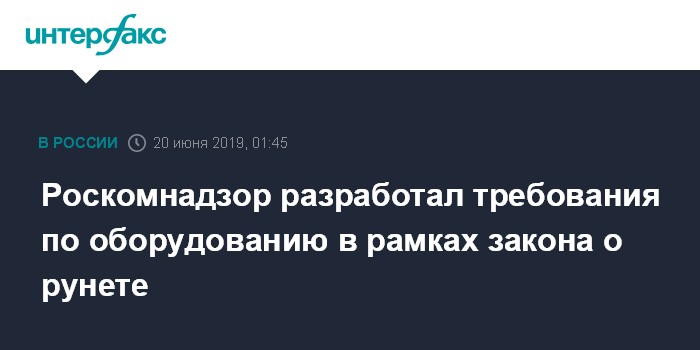 Москва. 20 июня. INTERFAX.RU - Роскомнадзор разработал технические условия установки операторами связи специального оборудования противодействия угрозам в рамках закона об устойчивом рунете.