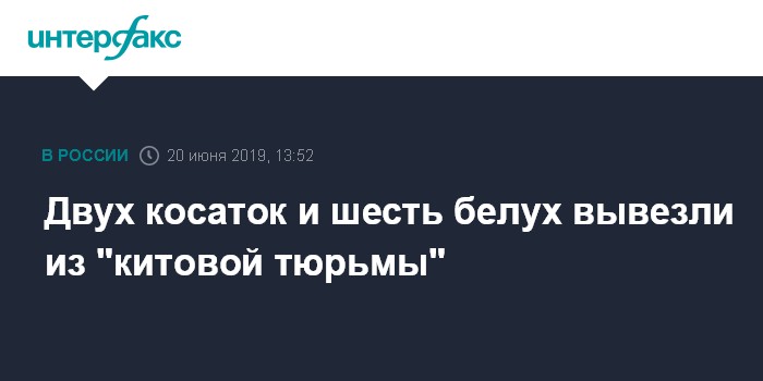 Москва. 20 июня. INTERFAX.RU - Началась транспортировка животных, находящихся в бухте Средняя Приморского края, из "китовой тюрьмы" вывезли двух косаток и шесть белух. Об этом сообщили в пресс-службе Всероссийского научно-исследовательского института рыбного хозяйства и океанографии (ВНИРО).