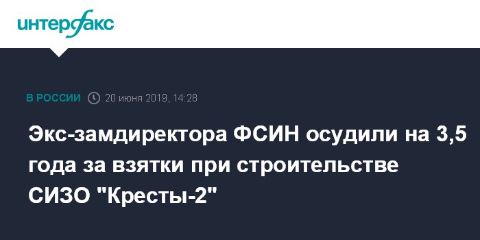 Экс-замдиректора ФСИН осудили на 3,5 года за взятки при строительстве СИЗО "Кресты-2"