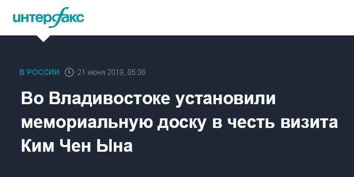 Москва. 21 июня. INTERFAX.RU - Памятная доска в честь визита во Владивосток лидера КНДР Ким Чен Ына в Приморье весной этого года и встречи с президентом России Владимиром Путиным, открыта во Владивостоке, сообщила в пятницу пресс-служба регионального отделения "Единой России".