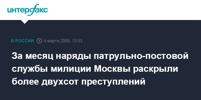 За месяц наряды патрульно-постовой службы милиции Москвы раскрыли более двухсот преступлений