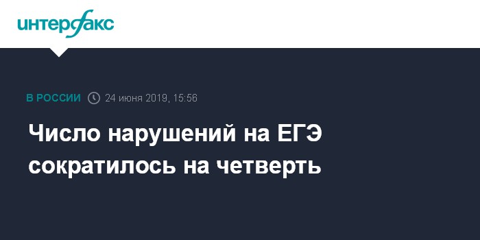 Москва. 24 июня. INTERFAX.RU - Глава Рособрнадзора Сергей Кравцов сообщил, что число нарушений на ЕГЭ, закончившихся аннулированием результатов экзамена, сократилось на 25%.