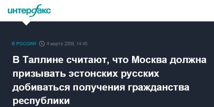 В Таллине считают, что Москва должна призывать эстонских русских добиваться получения гражданства республики