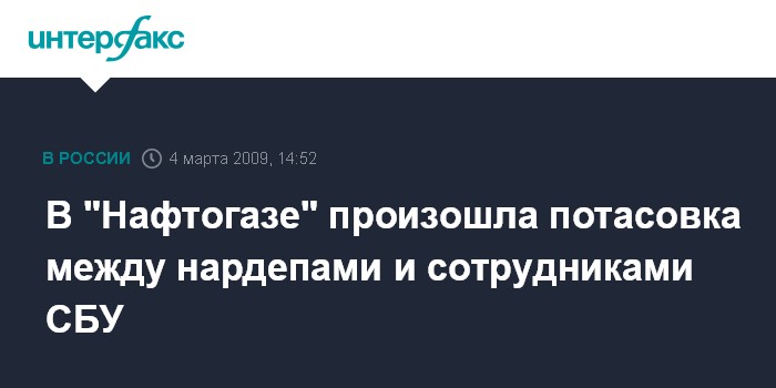 Москва. 4 марта. INTERFAX.RU - Потасовка между народными депутатами, преимущественно от фракции Блока Юлии Тимошенко, и сотрудниками Службы безопасности произошла в помещении Национальной акционерной компании (НАК) "Нафтогаз Украины", сообщили агентству "Интерфакс-Украина" в пресс-службе НАК. По ее данным, депутаты пытались пройти в актовый зал, где проводятся следственные действия с сотрудниками НАК, тогда как сотрудники СБУ препятствовали им в этом.