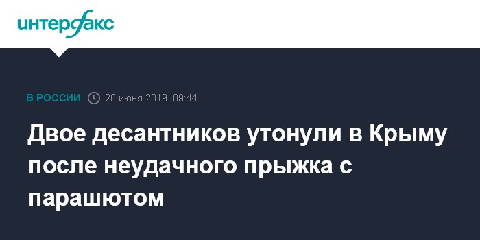 "Двое военнослужащих контрактной службы одной из воинских частей ВДВ, дислоцированных в Крыму, приземлились на водную поверхность и не смогли своевременно освободиться от подвесной системы парашюта", - отмечается в сообщении.
