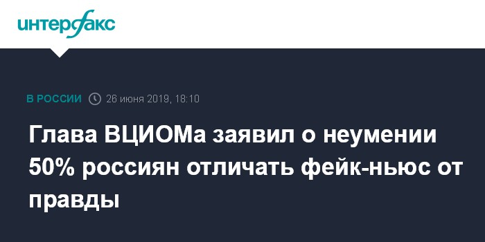 Глава ВЦИОМа заявил о неумении 50% россиян отличать фейк-ньюс от правды