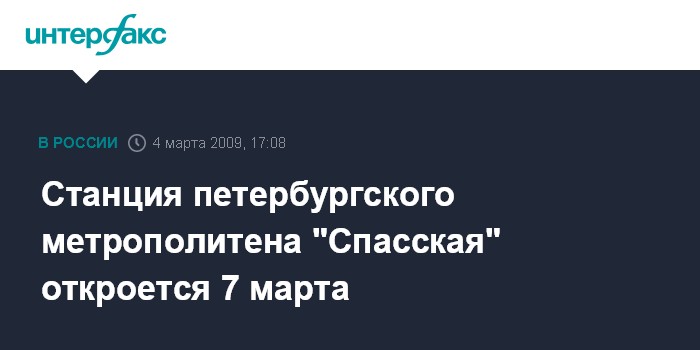 Москва. 4 марта. INTERFAX.RU - ГУП "Петербургский метрополитен" планирует открыть новую станцию "Спасская" 7 марта, говорится в сообщении ГУП.
