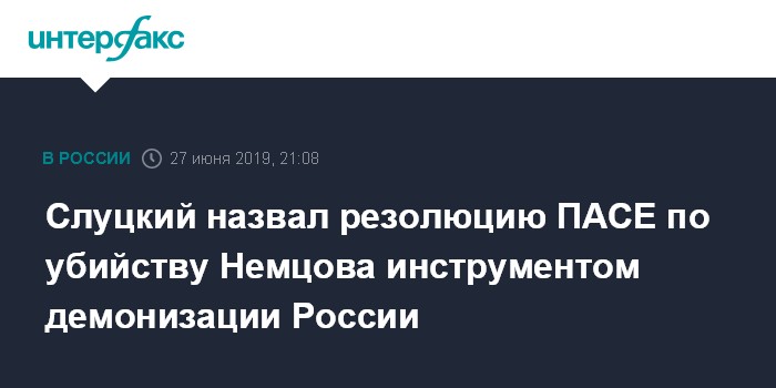 "Доклад об убийстве Бориса Немцова абсолютно политизирован и ангажирован. Это доклад не о Немцове, а об использовании его имени как инструмента демонизации России на площадке ПАСЕ", - сказал журналистам Слуцкий в четверг.