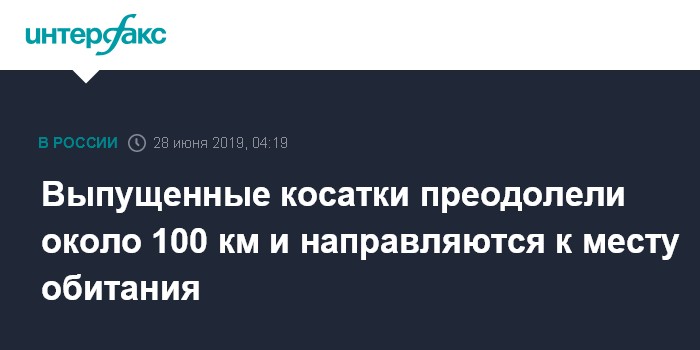 "Сигналы со спутниковых меток, установленных на плавниках косаток, сообщают, что животные с момента выпуска уже проплыли около 100 км. Косатки движутся в сторону Шантарских островов. Этот именно тот район, где их поймали и где, возможно, находится их семья", - сообщили во ВНИРО.