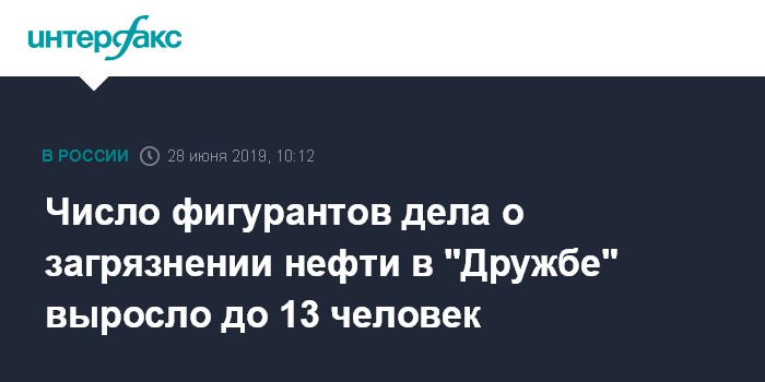 Москва. 28 июня. INTERFAX.RU - Число фигурантов по делу о загрязнении нефтепровода "Дружба" в настоящее время составляет 13 человек, сообщил журналистам адвокат директора ООО "Нефтеперевалка" Светланы Балабай Дмитрий Натариус.