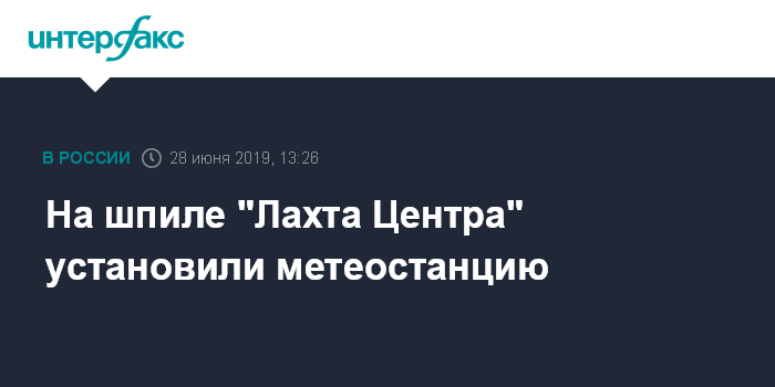 Москва. 28 июня. INTERFAX.RU - Альпинисты установили метеостанцию на шпиле "Лахта Центра" на высоте 462 метра, сообщается в инстаграм-аккаунте небоскреба.