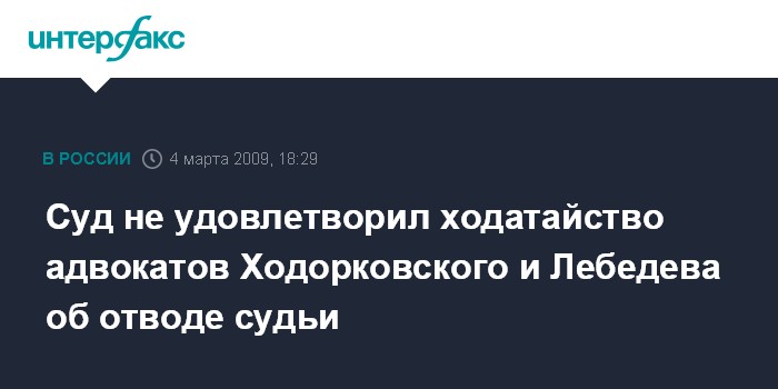 "В отводе нам отказали, судья указал в своем решении, что нет оснований, предусмотренных законом", - сообщила "Интерфаксу" адвокат Лебедева Елена Липцер.
