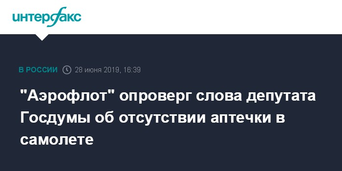 "Таким образом, информация об отсутствии на рейсе аптечки полностью не соответствует действительности. "Аэрофлот" выражает крайнее удивление сделанным заявлением депутата Госдумы Татьяны Соломатиной", - добавили в пресс-службе авиакомпании.