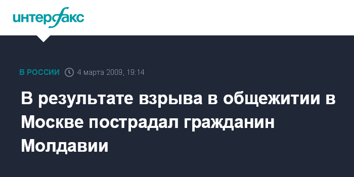 В результате взрыва в общежитии в Москве пострадал гражданин Молдавии