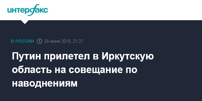 Москва. 29 июня. INTERFAX.RU - Президент РФ Владимир Путин прибыл в город Братск Иркутской области, где объявлен режим чрезвычайной ситуации в связи с мощным паводком.