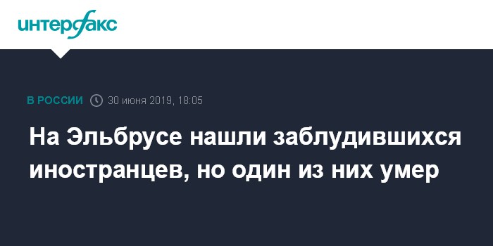 Москва. 30 июня. INTERFAX.RU - Во время спуска с Эльбруса скончался один из ирландцев, сбившихся с маршрута, сообщил в воскресенье "Интерфаксу" информированный источник.