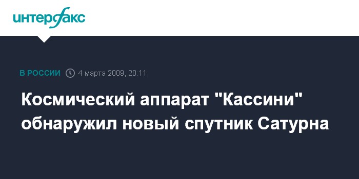 Нью-Йорк. 4 марта. INTERFAX.RU - Астрономы обнаружили ранее неизвестный спутник Сатурна, вращающийся в шестом кольце планеты, сообщает американская телекомпания CNN со ссылкой на информационный циркуляр, опубликованный во вторник Международным астрономическим союзом (МАС).