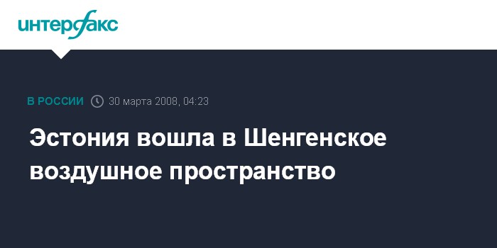 Таллин. 30 марта. ИНТЕРФАКС - В воскресенье 00.00 по местному времени (01.00 мск) Эстония вошла в Шенгенское воздушное пространство.