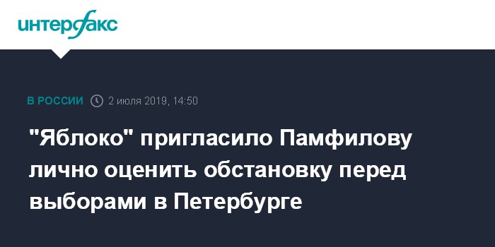 Москва. 2 июля. INTERFAX.RU - Зампредседателя "Яблока" и руководитель избирательного штаба партии Николай Рыбаков пригласил главу Центризбиркома Эллу Памфилову приехать в Санкт-Петербург и лично оценить ситуацию в городе перед муниципальными выборами.