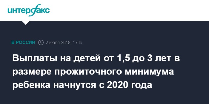 Выплаты на детей от 1,5 до 3 лет в размере прожиточного минимума ребенка начнутся с 2020 года