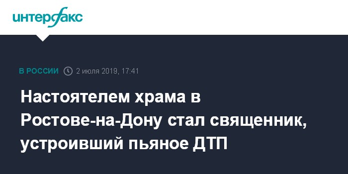 Москва. 2 июля. INTERFAX.RU - Иерей Димитрий Кивилиди, который в пьяном виде в 2017 году устроил крупное ДТП в Ростове-на-Дону, назначен настоятелем храма в ростовской станице Мишкинская.