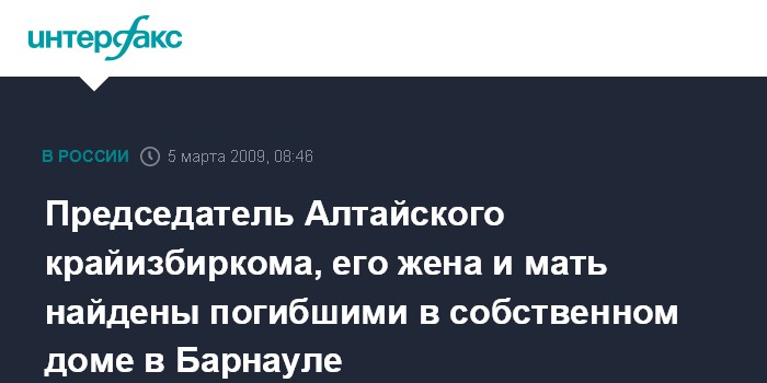 Председатель Алтайского крайизбиркома, его жена и мать найдены погибшими в собственном доме в Барнауле