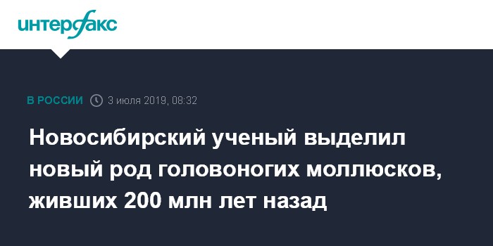 Москва. 3 июля. INTERFAX.RU - Старший научный сотрудник лаборатории палеонтологии и стратиграфии мезозоя и кайнозоя Института нефитегазовой геологии и геофизики имени Трофимука (ИНГГ, Новосибирск) Алексей Константинов выделил новый род вымерших головоногих моллюсков, имевших наружную раковину - аммоноидей, сообщает пресс-служба ИНГГ.
