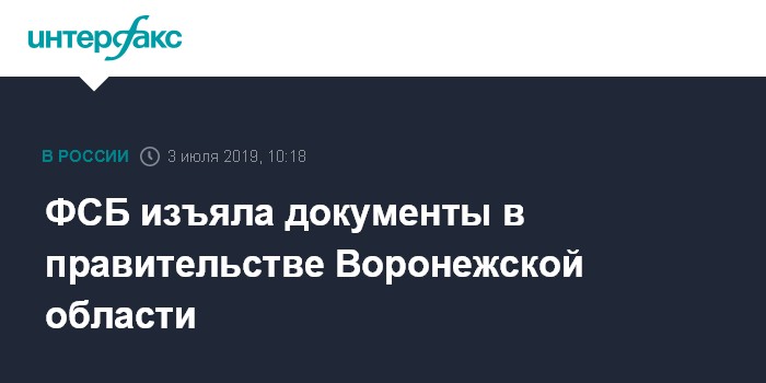 Москва. 3 июля. INTERFAX.RU - Управление ФСБ по Воронежской области провело выемку документов в департаменте труда и занятости Воронежской области, сообщили "Интерфаксу" в пресс-службе ведомства во вторник.