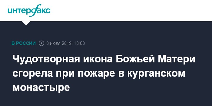 Москва. 3 июля. INTERFAX.RU - Чудотворная икона Божьей Матери сгорела при пожаре в Чимеевском мужском монастыре в Курганской области, сообщил "Интерфаксу" представитель областного правительства Дмитрий Бровко.