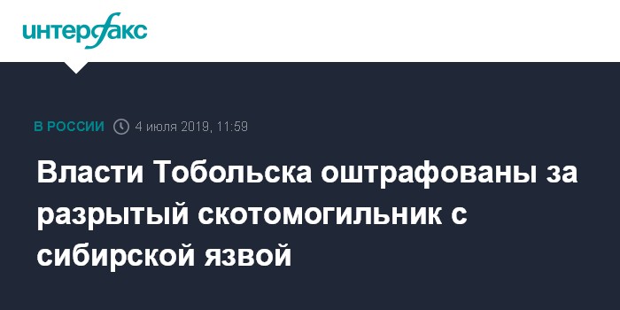Москва. 4 июля. INTERFAX.RU - Суд в Тобольске подтвердил решение регионального управления Россельхознадзора о взыскании с администрации города штрафа за ненадлежащее содержание сибиреязвенного скотомогильника.