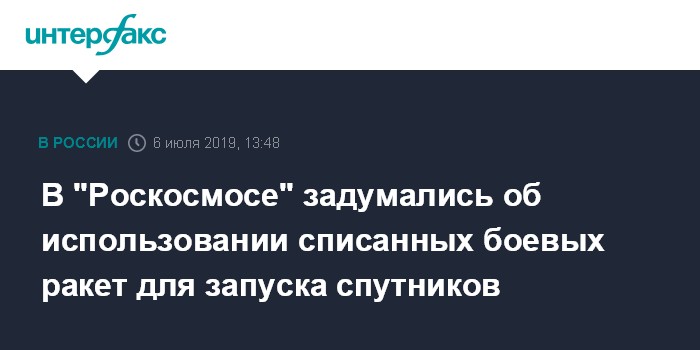 Москва. 6 июля. INTERFAX.RU - Боевые ракетные комплексы, выводимые с дежурства, надо использовать для запуска на орбиту гражданских спутников, считает глава "Роскосмоса" Дмитрий Рогозин.