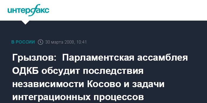 Грызлов: Парламентская ассамблея ОДКБ обсудит последствия независимости Косово и задачи интеграционных процессов