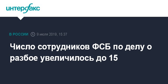 Москва. 9 июля. INTERFAX.RU - Число сотрудников ФСБ, проходящих по делу о разбое, возросло до 15. Об этом "Интерфаксу" сообщили информированные источники.