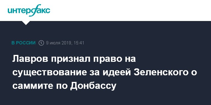 Москва. 9 июля. INTERFAX.RU - Предложение президента Украины Владимира Зеленского о проведении саммита с участием России, Украины, Великобритании, Германии, Франции и США имеет право на существование, но упор должен делаться на прямой диалог сторон конфликта, заявил глава МИД РФ Сергей Лавров.