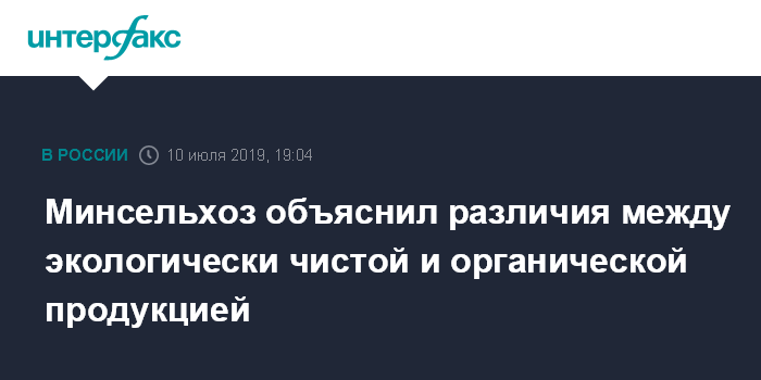 Москва. 10 июля. INTERFAX.RU - Минсельхоз объяснил, в чем будут заключаться различия между экологически чистой и органической продукцией, для появления которой в России готовится законодательство.