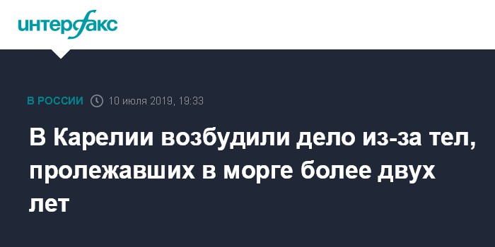 Москва. 10 июля. INTERFAX.RU - В Петрозаводске после обнаружения в морге тел, пролежавших там более двух лет, возбуждены четыре уголовных дела о мошенничестве, сообщили "Интерфаксу" в пресс-службе МВД Карелии.