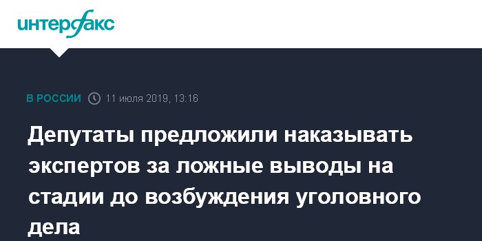 По словам депутата, заключения и показания эксперта или других специалистов часто бывают нужны еще до возбуждения дела, для проверки отсутствия или наличия признаков преступления. Например, на этой стадии может потребоваться судмедэкспертиза потерпевшего, графологическая экспертиза или экспертиза вещей по жалобам на незаконный оборот наркотиков или взрывчатки. Если эксперт предоставит ложные сведения, возникает угроза необоснованного уголовного преследования невиновного или незаконного отказа в возбуждении дела, объяснил Крашенинников.