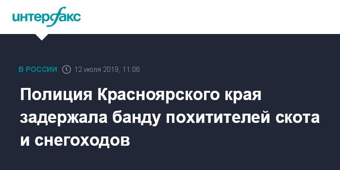 Москва. 12 июля. INTERFAX.RU - В городе Назарово в Красноярском крае полицейские и сотрудники Росгвардии задержали пятерых мужчин и женщину по подозрению в серии краж снегоходов и домашнего скота. Об этом сообщила пресс-служба МВД.