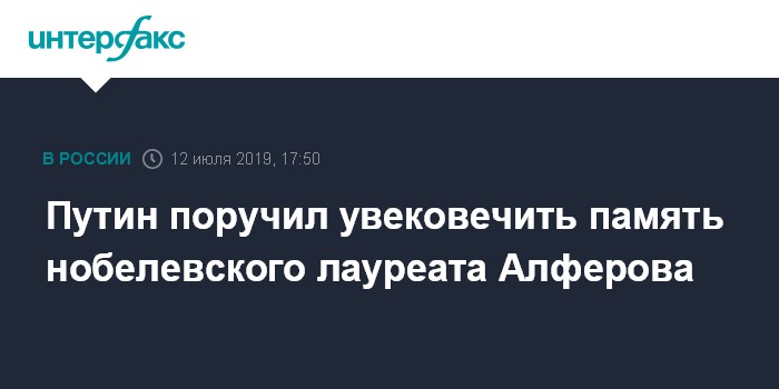 Москва. 12 июля. INTERFAX.RU - Президент РФ Владимир Путин подписал указ об увековечивании памяти лауреата Нобелевской премии Жореса Алферова.