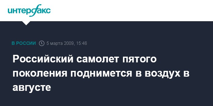 Москва. 5 марта. INTERFAX.RU - Летные испытания самолета пятого поколения начнутся в России в августе, заявил замминистра обороны РФ Владимир Поповкин.