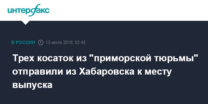 Трех косаток из "приморской тюрьмы" отправили из Хабаровска к месту выпуска