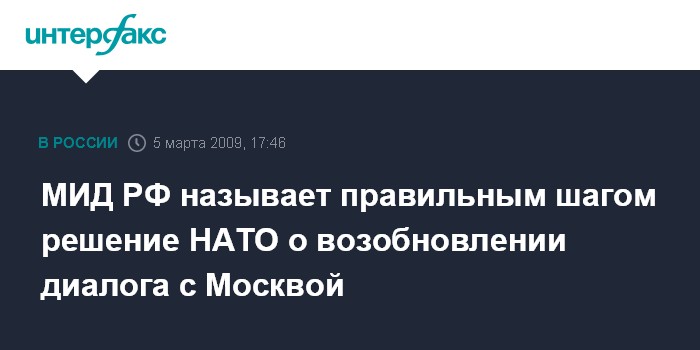 Москва. 5 марта. INTERFAX.RU - МИД России приветствует решение НАТО возобновить политический диалог с Россией, однако подчеркивает, что такие решения не должны быть односторонними.