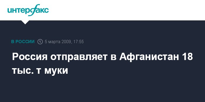 Москва. 5 марта. INTERFAX.RU - Россия начала оказывать продовольственную помощь Афганистану, отправив 18 тыс. т муки.
